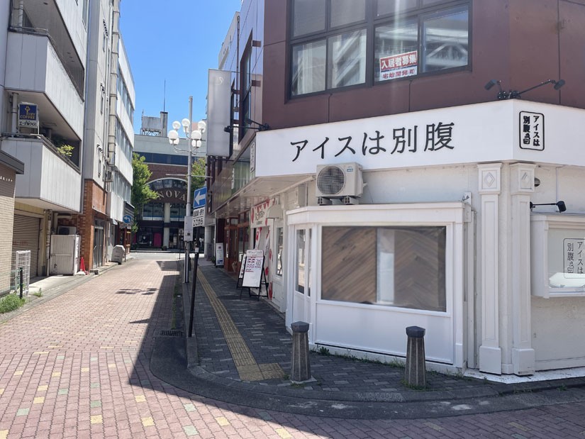 ポップアップ販売が行われる「アイスは別腹 松本店」は、松本駅のお城口(東口)から徒歩5分ほどの場所で営業。店内にはイートインスペースのほか、フォトスポットも完備。