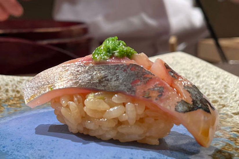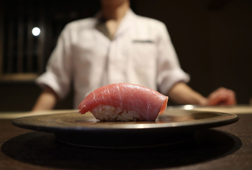 同店では、長野県産米と赤酢を合わせたシャリと、「漬け」や「昆布締め」などひと仕事を施したネタが魅力の江戸前寿司を中心に、完全予約制の「おまかせ鮨コース」を提供。