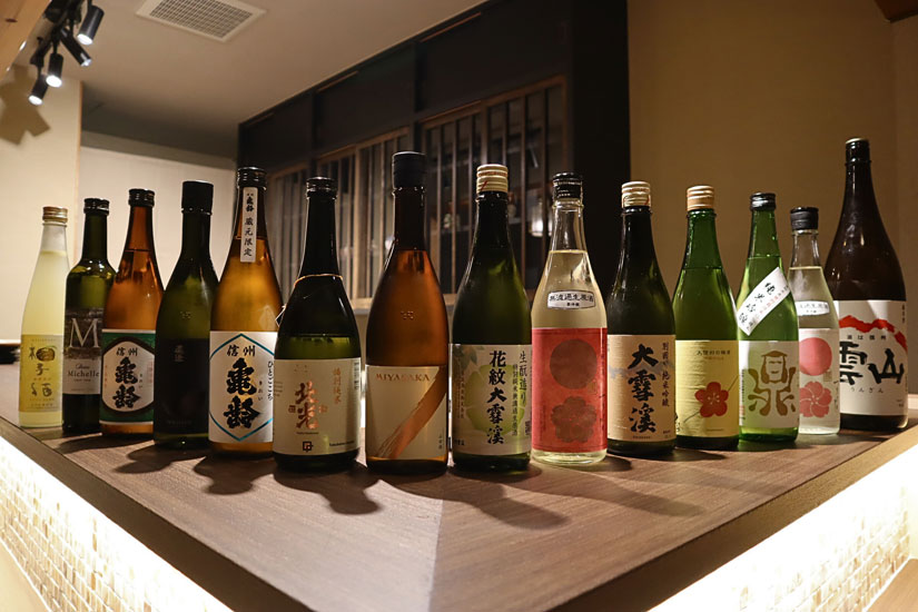 「依和-EIWA-」のもうひとつの魅力が、長野県の地酒。酒蔵を一軒一軒訪問し、ひと銘柄ずつ由依さんが厳選。約15種類ほど取り揃えます。