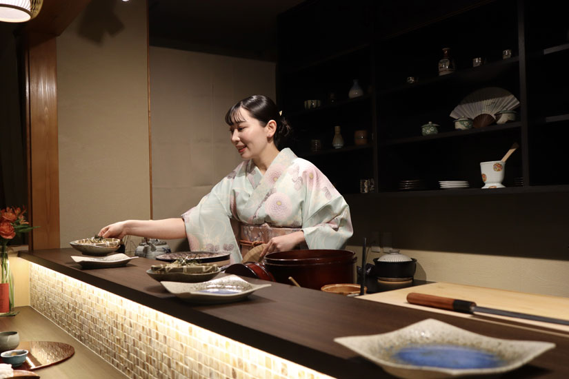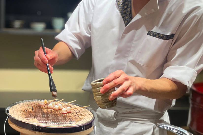 職人の”仕事”を間近で楽しめる臨場感と、炭火で焼く音や香りなど、五感で楽しむ体験が魅力。