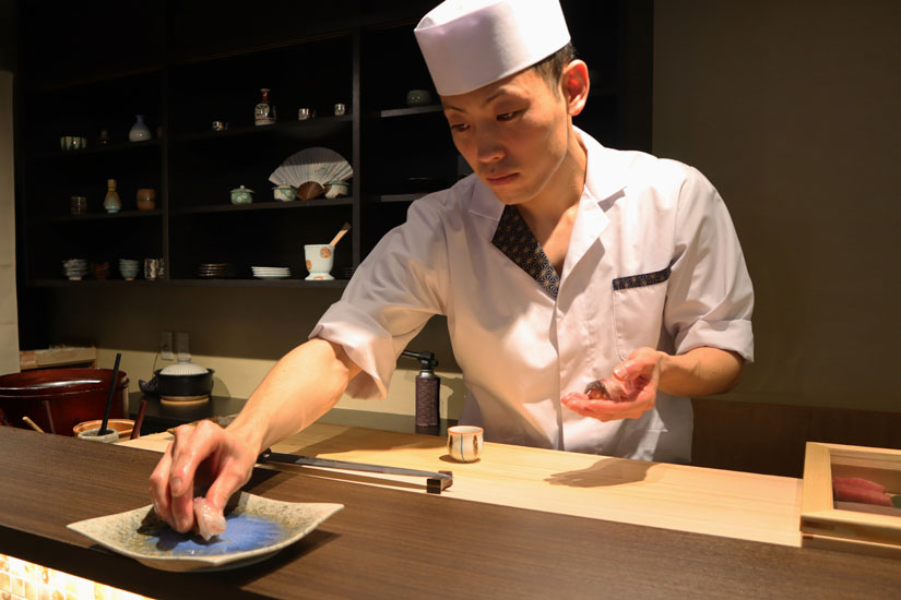 大阪の名店で修業を重ねた後、習得した技術を携えてアメリカ・フロリダ州や、中央ヨーロッパのスロバキアなど海外で経験を積みます。特にスロバキアでは、国内初の本格的な寿司店でヘッドシェフを務めました。