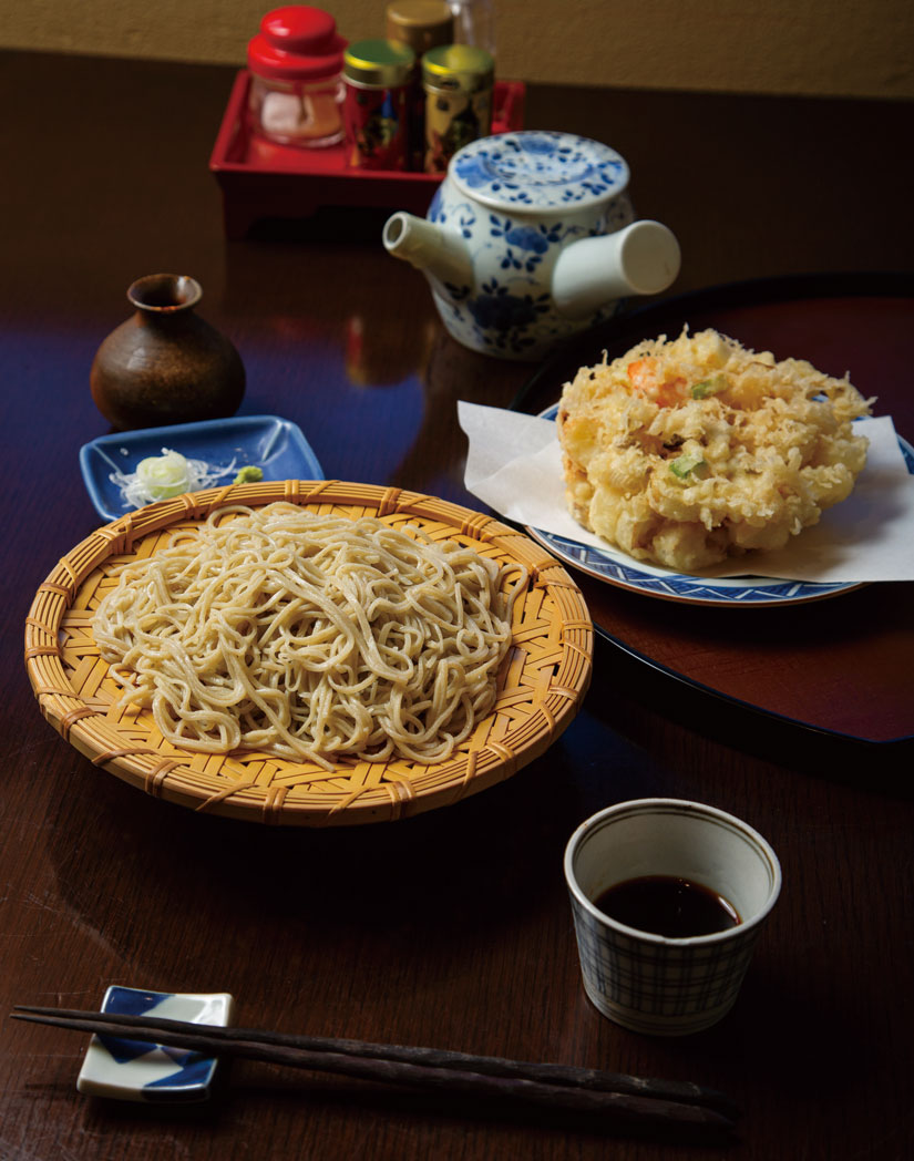 そして、趣ある景観と合わせて味わえるのは、八ヶ岳産の蕎麦の実を店内の石臼で挽いて手打ちするこだわりのそば。定番人気の「ざるそば」や「かき揚げ天ざる」、一品料理なども合わせて楽しめるコース「そば三昧」といったメニューがそろいます。