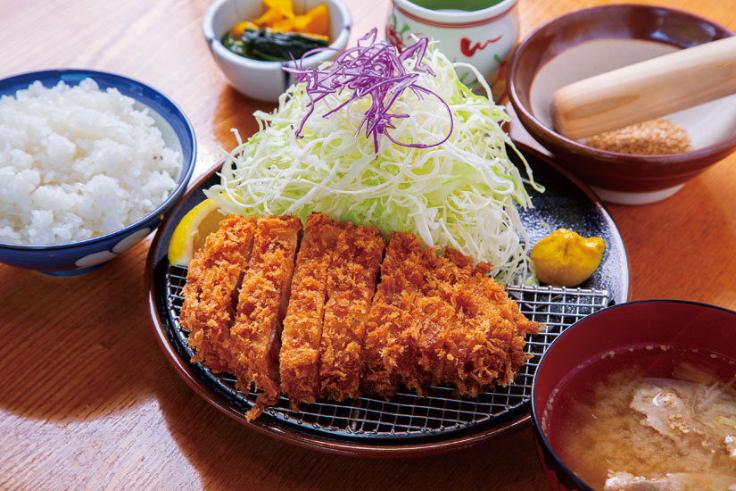 創業以来使用しているパン粉は、諏訪市内の「太養パン店」から当日の朝に食パンを仕入れ、店内で挽いて作る生パン粉。米は安曇野市の契約農家のコシヒカリ、ウスターベースと中濃の2種類のオリジナルソースなど、定食にならぶ面々はまさにオールスターと言っても過言ではありません。創業から46年、老若男女に愛されるのも頷けます。