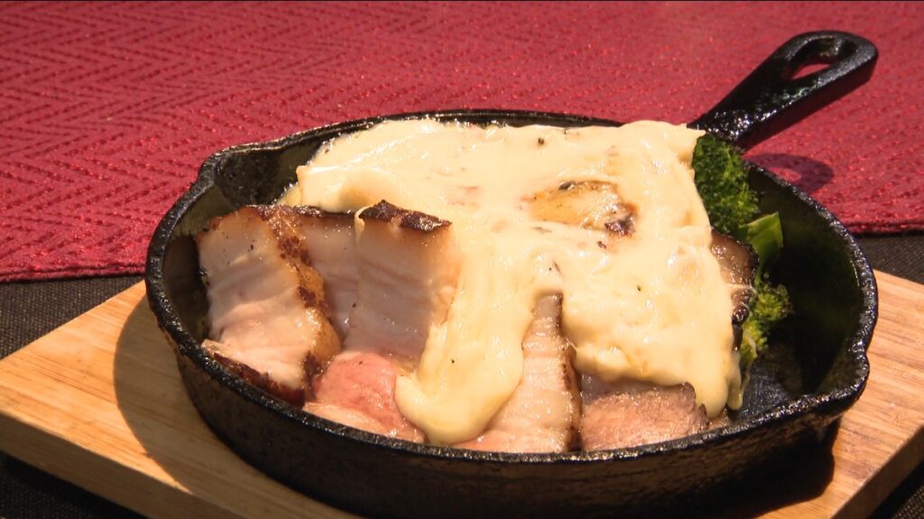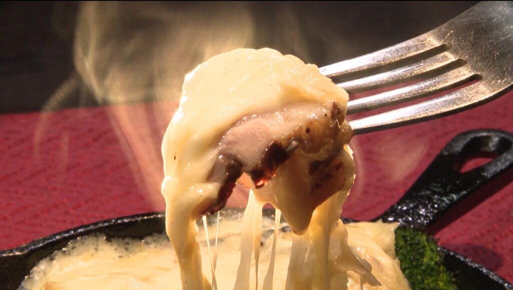 アツアツを食べると、チーズはミルキーで濃厚。しっかり塩気があるので、肉・野菜との相性も絶妙です。大塚さんは「食べるだけではなく、見ることも楽しみに」と心掛けています。