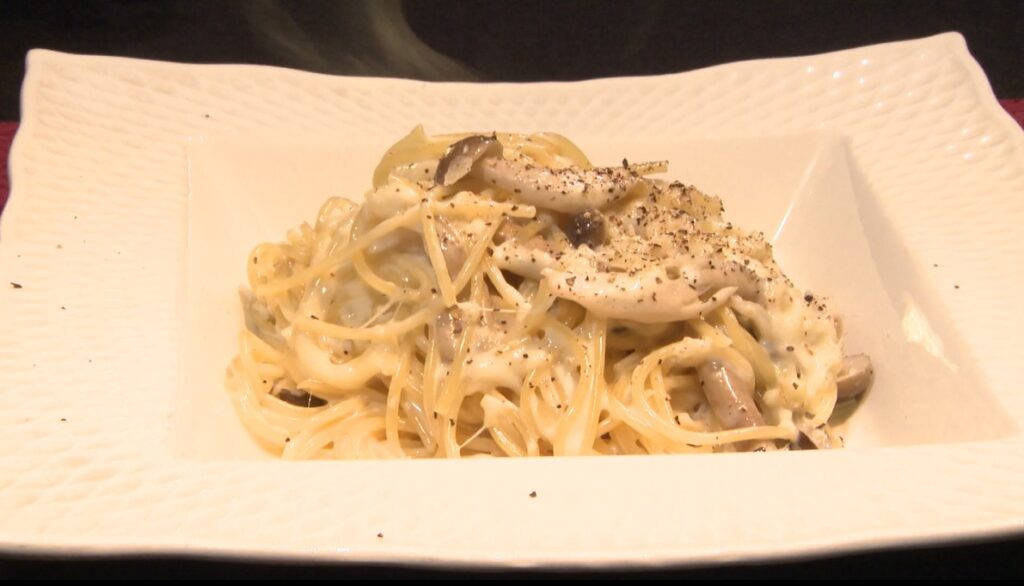 カチョはチーズ、ぺぺはコショウのこと。シンプルな味付けですが、信州産のマイタケとシメジを加えていることもあって、奥深い旨味が口の中に広がります。豪快に見えて、実は計算された一皿なんです。