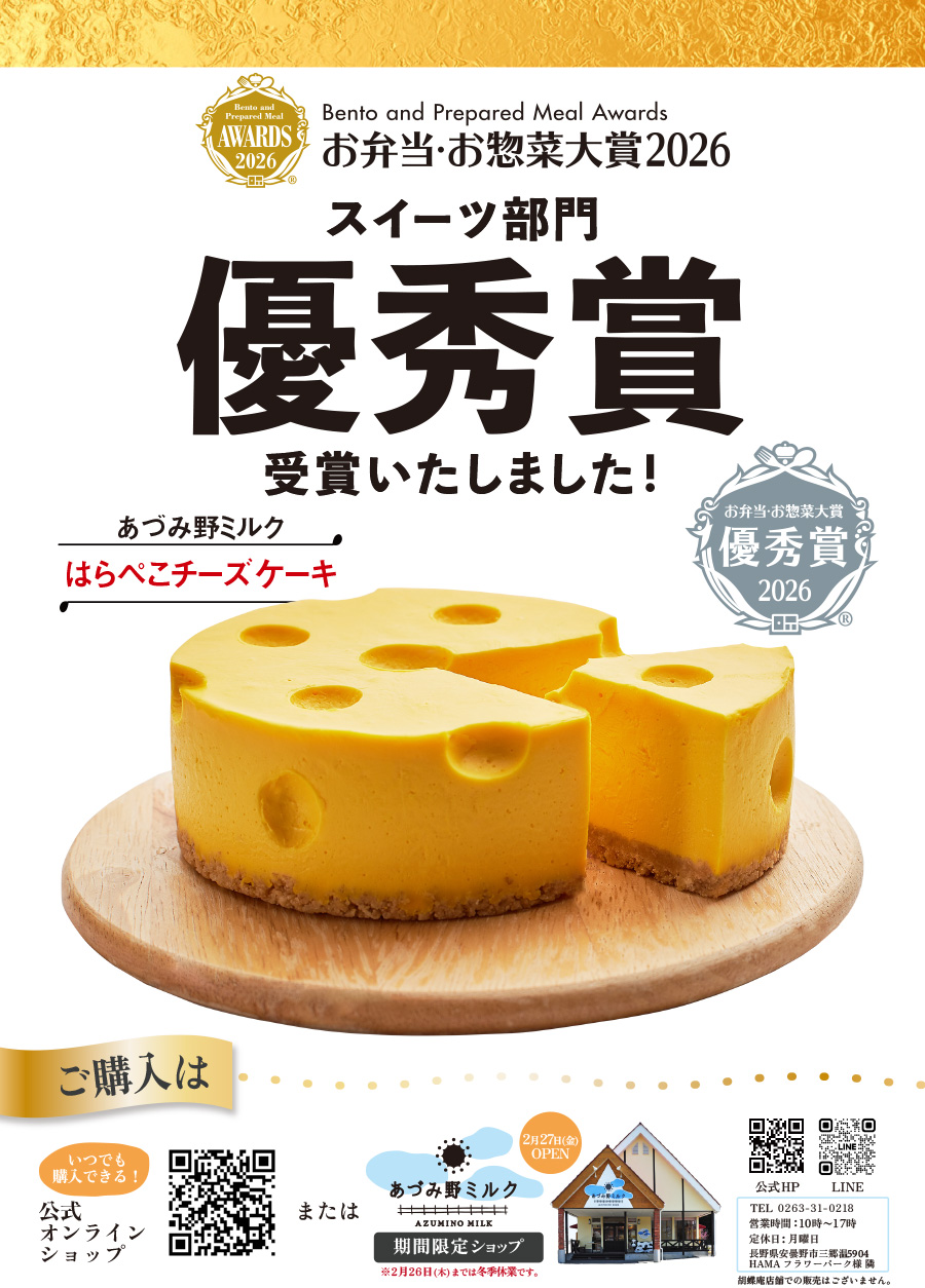 冬季休業を経て待望のオープンとなる今年は、全国15,000点以上のエントリーの中から「お弁当・お惣菜大賞2026」スイーツ部門で優秀賞を受賞した話題の「はらぺこチーズケーキ」をはじめ、ここでしか味わえない魅力的なラインナップがそろいます。