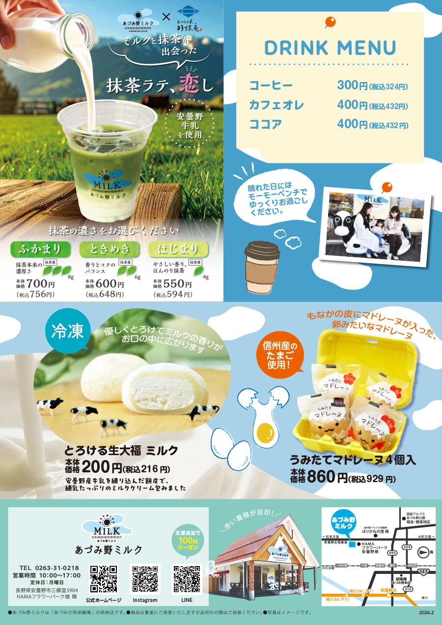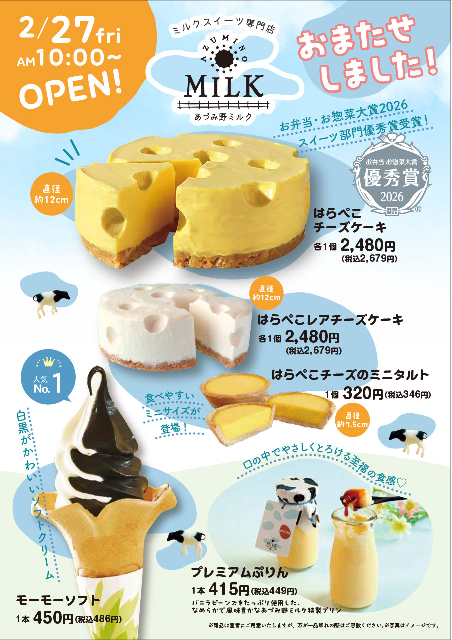 安曇野の自然豊かな大地で育まれた牛乳の魅力を、遊び心あふれるスイーツで発信する「ミルクスイーツ専門店 あづみ野ミルク」が、2026年2月27日(金)10時より今季の営業を再開します。
