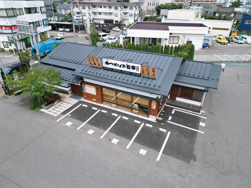設立1991年の本格手打ちそば専門店「榑木野(くれきの)」の新業態として、2024年に長野県・松本IC近くにオープンした「かつそばや松幸 本店(かつそばやまつこう)」。