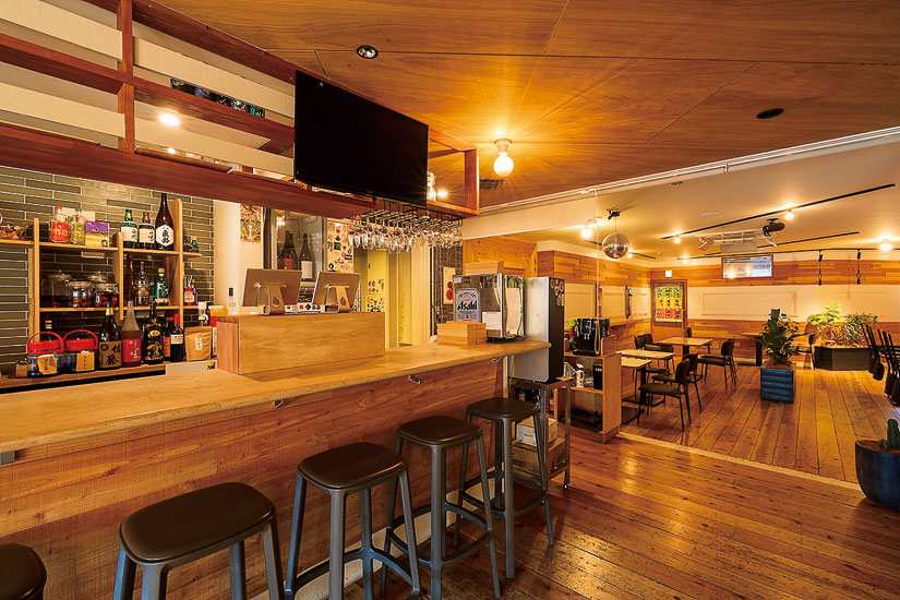 木材を使ったあたたかみのある店内。注文はスマホオーダーにも対応。