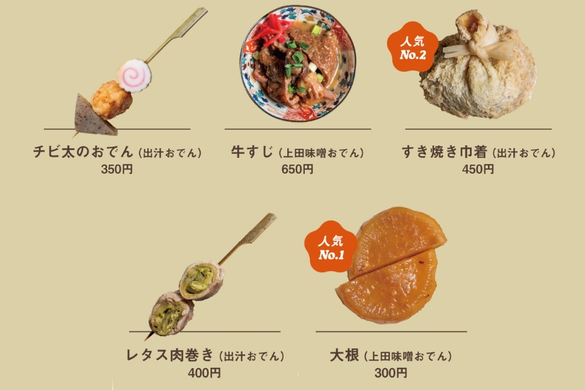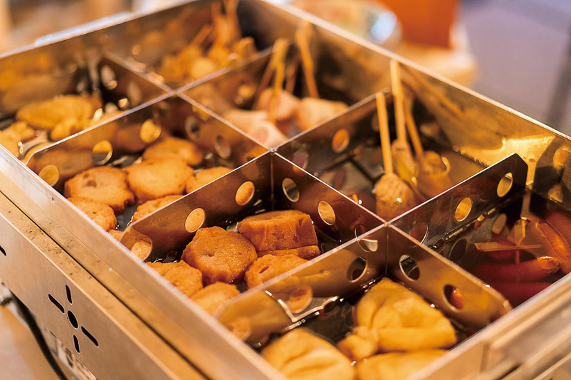 大根や牛すじなど王道の品ぞろえですが、「もっと自由な発想でおでんの可能性を広げたい」と、2025年には新たに「出汁おでん」を開発。一品料理のように手の込んだ品や旬の野菜を生かしたものなど、変化に富んだおでん種を考案し、“昆布の王さま”と呼ばれる羅臼昆布の旨味を染み込ませています。「上田味噌おでん」に「出汁おでん」が加わったことで、自分好みの種を選んだり、お酒とペアリングしたりする楽しさが倍増しました。