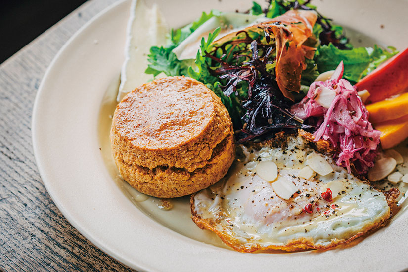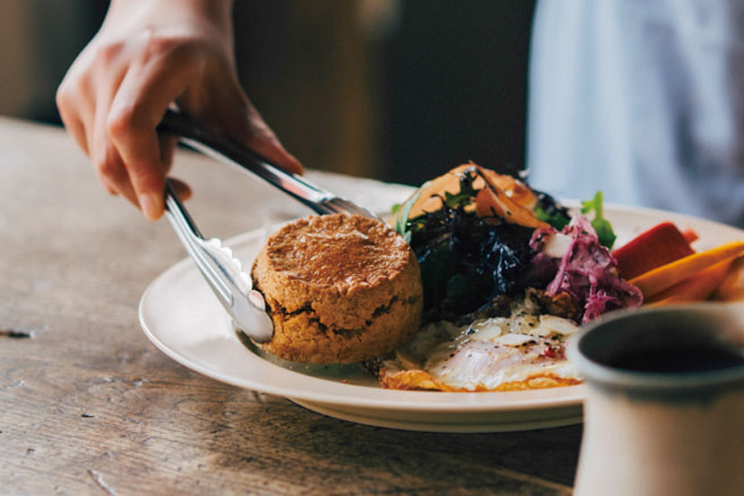 朝8時の開店を待ちわびるように、静かに集まってくる常連客の目当ては評判の朝食メニューです。契約農家から届く旬の野菜をふんだんに使った「モーニングプレート」や「モーニングトースト」は、ベイクや目玉焼きなどを自由に組み合わせて楽しめるセットスタイル。内容は季節によって変わりますが、食感の良いピクルスや生ハム、チーズなどが添えられることもあり、「お酒のアテにもなりますよ」と夏生さん。休日にはナチュラルワインとともにブランチとして味わうのもおすすめ。
