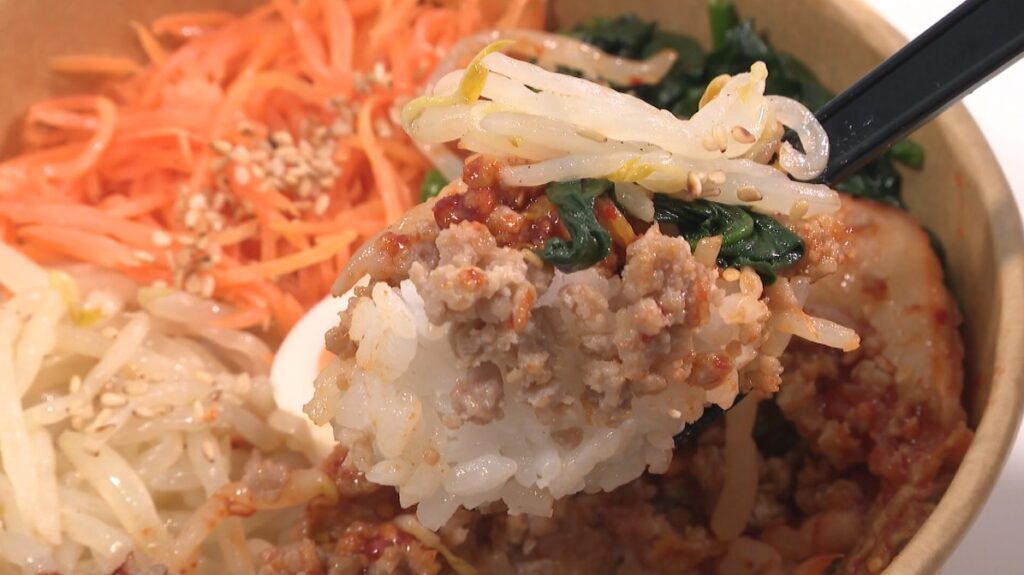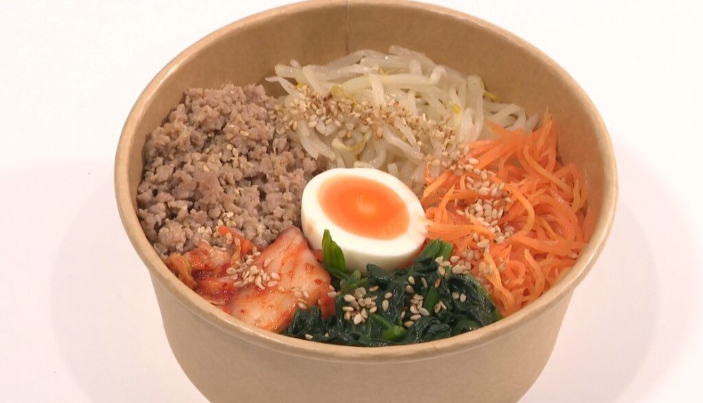 「ビビンバ弁当」は優しい味付けの手作りナムルが入っています。辛いのが好きな人はコチュジャンをプラス。