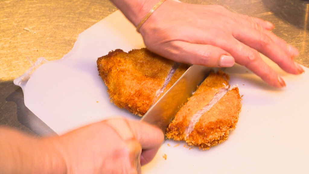 食べ進めると中からさらにカツを発掘⁉️なんとこのカツ丼、ご飯+カツ+ご飯+カツという4階建て構造になっているΣ੧(❛□❛✿)!「ご飯の量がとにかく多いので、全部食べ切ってもらえるよう、カツをご飯の間に入れた4段構造にすれば全部たべられるかなと思って」と店主。食べても食べてもカツにたどり着く、夢のようなカツ丼はもはや建築物といっても過言じゃない!