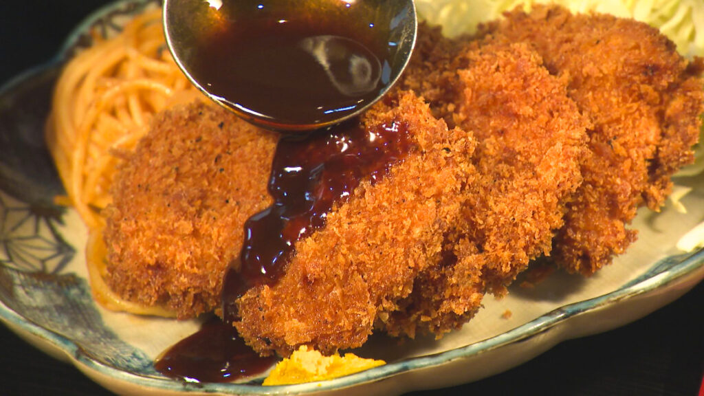 衣はサクッとした食感で、中のお肉はジューシー。特製ソースはほどよい酸味と芳醇な味わいで、肉の旨みをさらに引き立てます。「なんしろ肉屋だから肉料理で頑張ってます」というお店の言葉通り、肉のおいしさが際立っています。