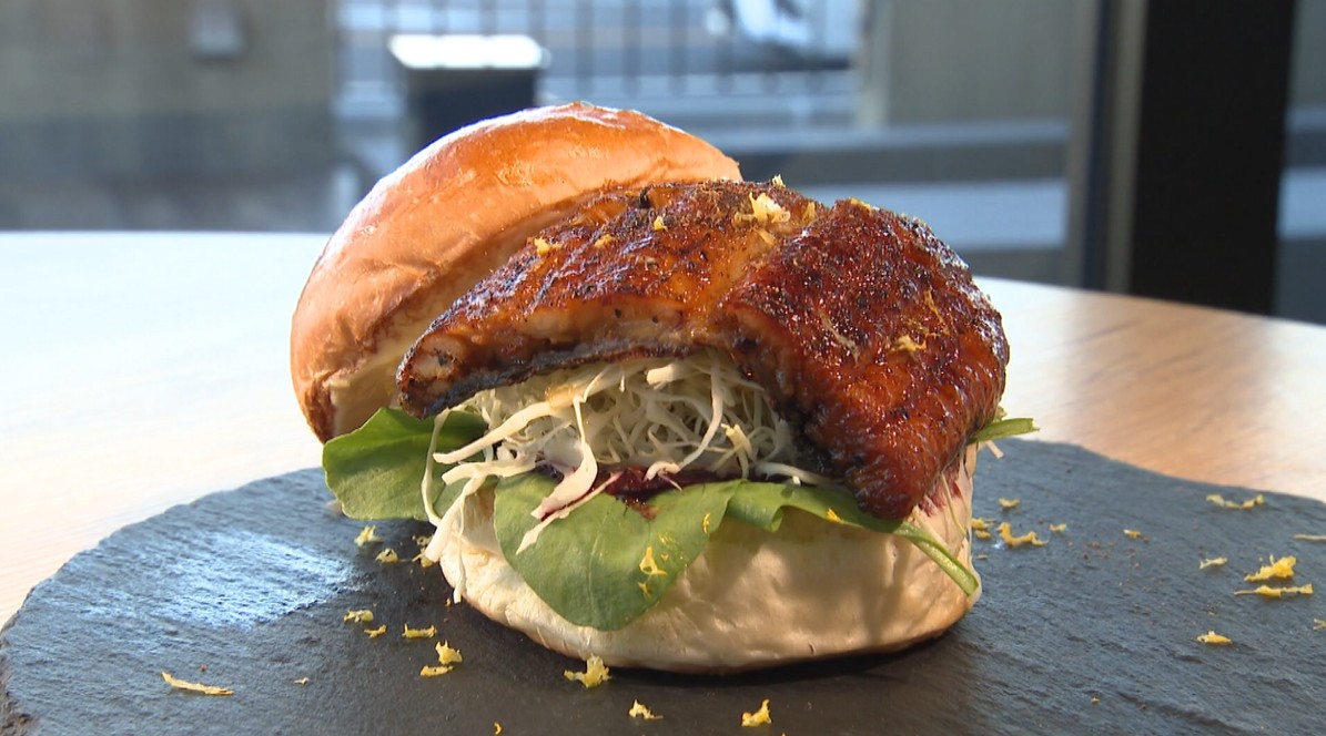 店の注目メニューは何といっても「うなぎバーガー」。岡谷は「うなぎのまち」として、官民挙げて活性化に取り組んでいます。