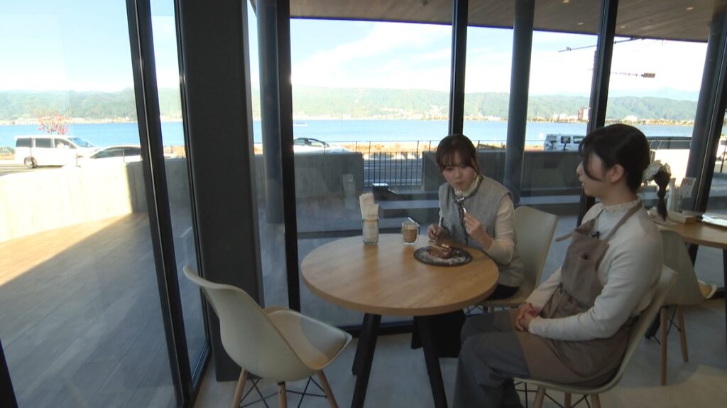 店内からも大きな窓から諏訪湖が望めます。穏やかな諏訪湖をながめながら、食事を楽しむ。新たな観光拠点として注目される「諏訪湖テラス」の魅力を高めています。