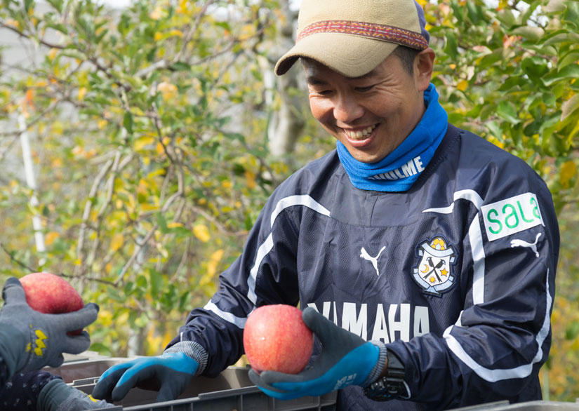 「町内はバケモノ級のりんご職人だらけ」と湯本さん。山ノ内町全体で高い技術を共有し、当たり前のように日々の栽培管理に導入されています。地域には若手の仲間達が多く、共に更なる品質の高みを目指して取り組みをしています。
