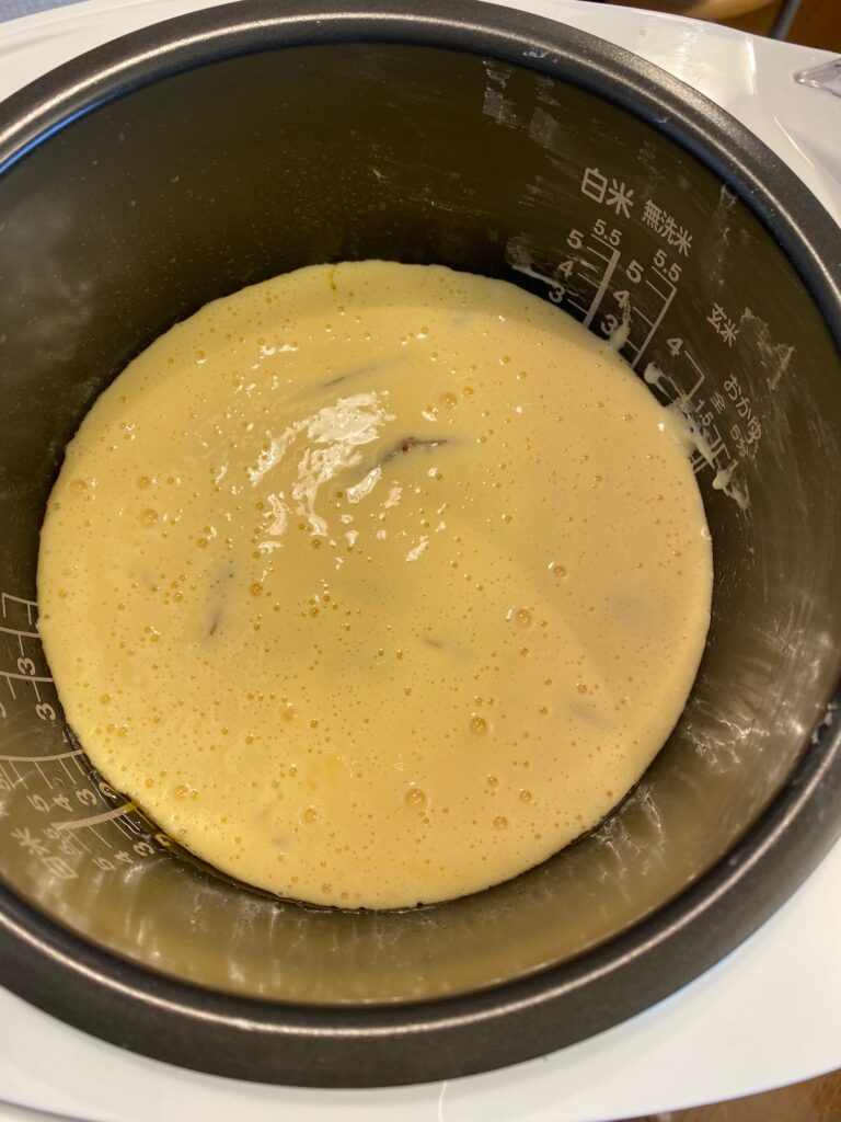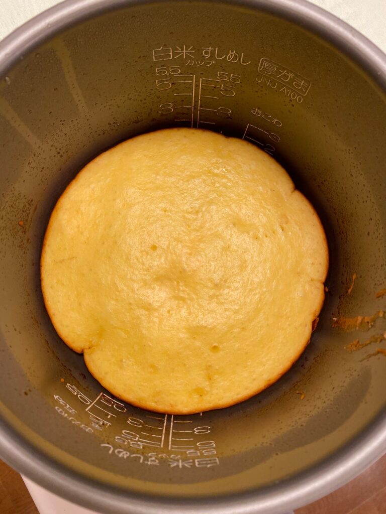 ④スイッチが切れたら、釜ごと外に出し、粗熱が取れたら、上下をひっくり返して、皿に盛る。