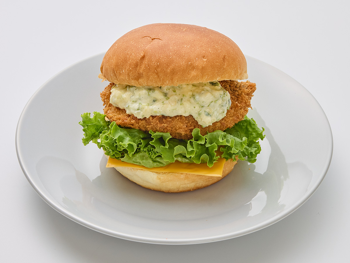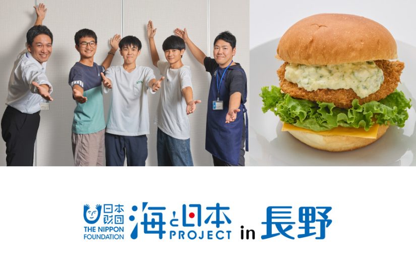 「海の政策コンテスト」で最優秀賞を受賞した松本県ヶ丘高校の生徒と綿半シェフが共同開発したこのバーガーは、能登産のブリを贅沢に使用し、きざみたくあんとあおさを使った和風タルタルソースの風味が、程よい脂と身の旨み、バンズの香ばしさと調和した一品。