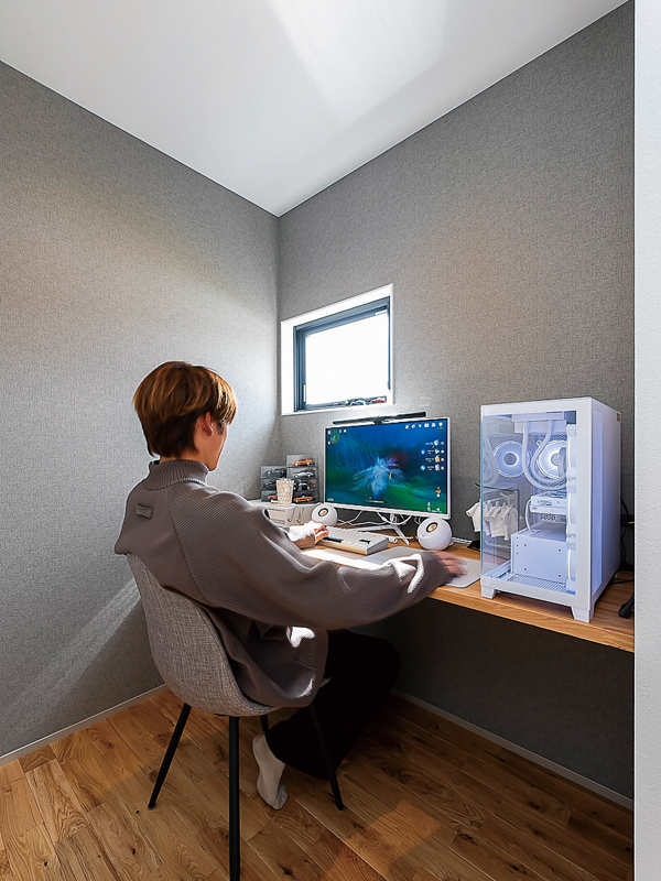 2階ホールの突き当りには、ひとり時間を過ごせる書斎コーナーが設けられています。夫婦共有の空間で、それぞれが思いおもいに過ごされるそうです。