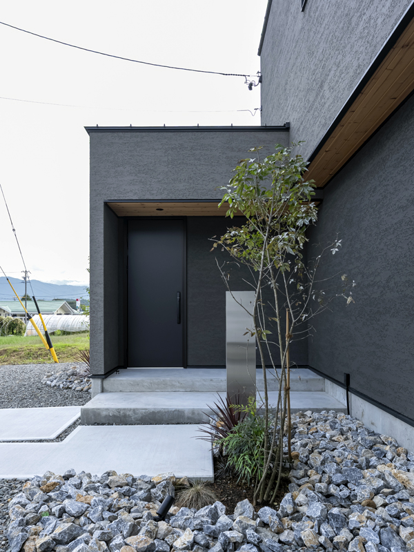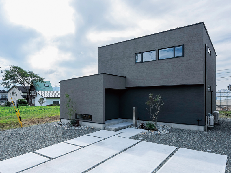 「箱を積み上げるようなデザインに」というお施主さまからの要望に応え、外観はキューブを積み重ねたような洋モダン。南側の中庭は高さ2mの外壁で囲われているので隣家からの視線も気になりません。