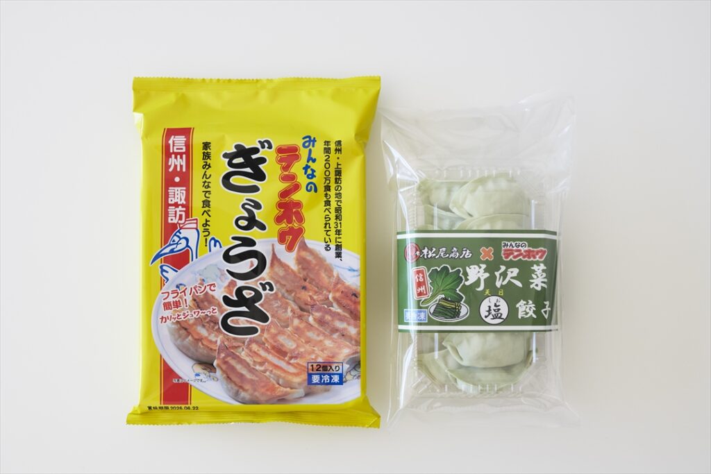 「野沢菜漬けぎょうざ」は、テレビ番組でも紹介され、出演者からも太鼓判をもらった一品。もっちりした皮と、ザクザクとした野沢菜餡の食感のバランスがよく、今では「テンホウぎょうざ」と並ぶ信州土産の定番になりつつあるほどの人気です。