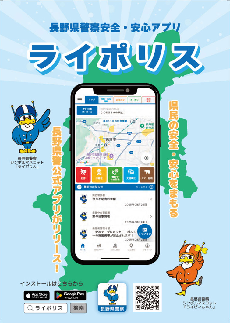 長野県警察公式アプリ「ライポリス」を知っていますか?このアプリは長野県民の安全・安心を守るため、防犯情報をわかりやすく発信するツールとして開発され、2025年2月3日にリリースされました。目標の3万ダウンロードを大きく上回り、現在5万4,000人が利用する人気アプリとなっています。