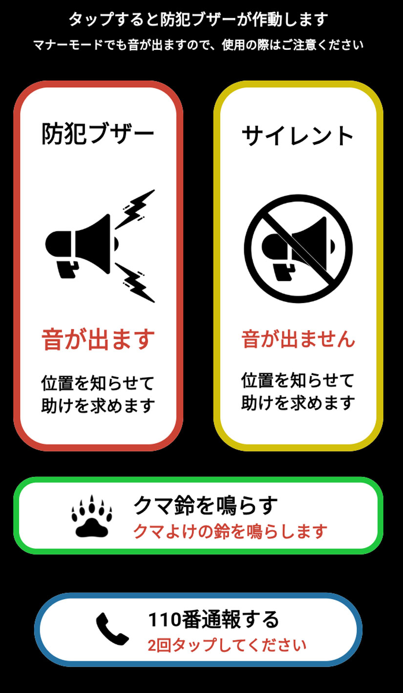 「ニュース番組で『ライポリスの熊情報』が紹介されたところ、テレビ放送直後からダウンロード数が飛躍的に伸びました」と関さん。 クマやイノシシなどの野生動物の出没情報をマップ上で確認できるだけでなく、アプリ内の「クマよけ鈴」機能を使えば、山歩きの際に鈴の音を鳴らし続けることができます。マナーモードでも音が出る仕様になっているため、実用的な防衛手段として活用されているそうです。