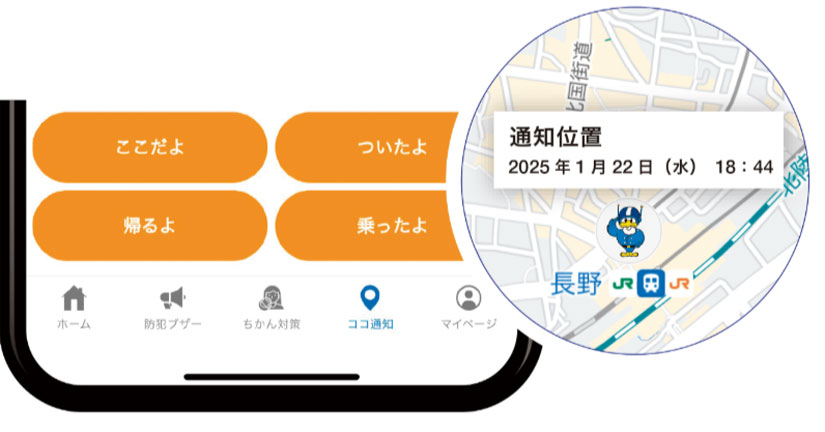 ◆いま、どこにいる?をすぐ伝えられる「ココ通知」