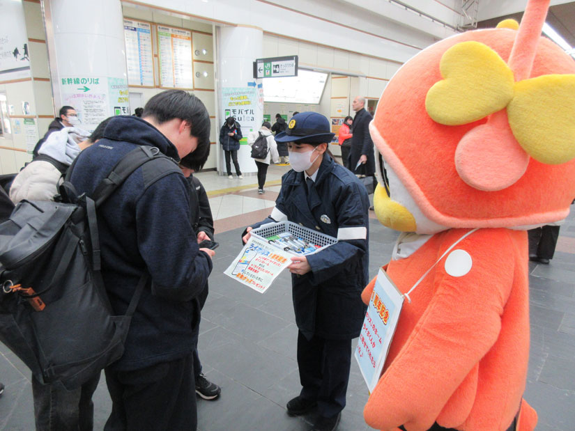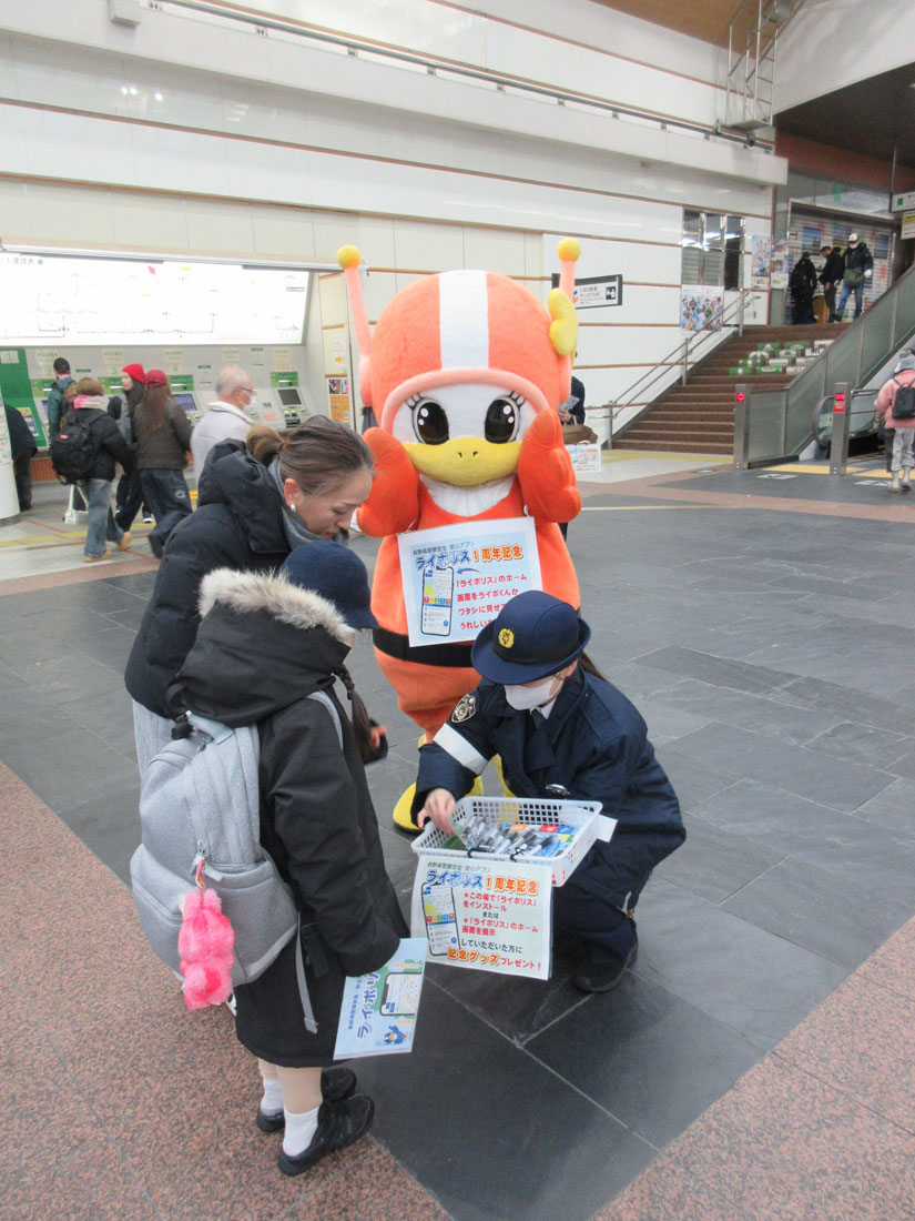 2026年2月3日には、アプリのリリース1周年を記念して長野駅と松本駅で広報活動が行われました。ライポくんやライピィちゃんも登場し、通りがかった人たちに「ライポリス」のチラシやオリジナルグッズなどが配布され、多くの方々がその場でアプリをダウンロードする姿も見られました。