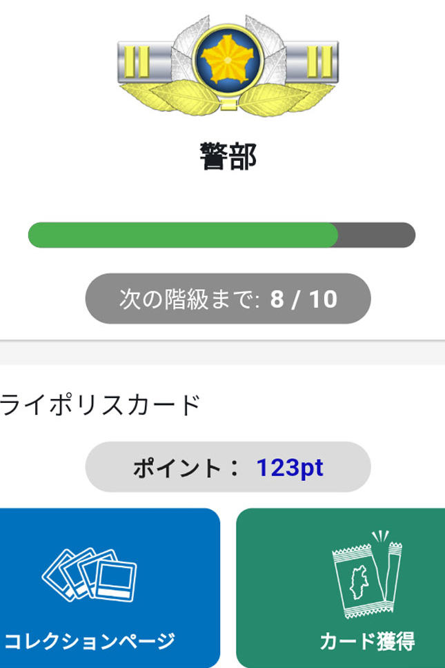 さらに、情報の閲覧回数や利用状況に応じて警察の階級が上がっていく「階級昇任制度」もユニーク。「これは、実際の警察組織の階級と同じなんです。『少しでも上の階級に行きたい!』という気持ちから、アプリをこまめにチェックしたりパトロールをする利用者の方も多いんですよ」と関さん。加えて、「ライポくん」「ライピィちゃん」のキャラクターカードが引ける特典もあり、コンプリートを目指すファンからは次回配布を心待ちにする声も寄せられています。