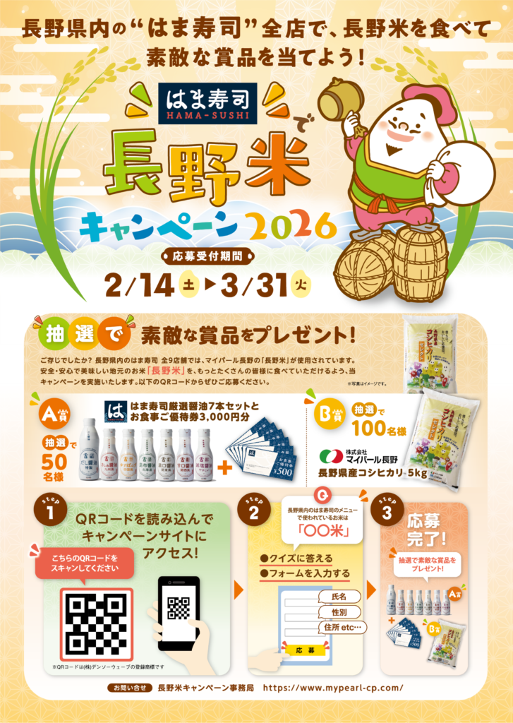 ■開催中~3/31(火) 『はま寿司で長野米キャンペーン2026』(県内9店舗)