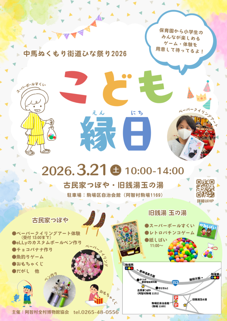■3/21(土) 中馬ぬくもり街道ひな祭り2026『こども縁日』(阿智村)