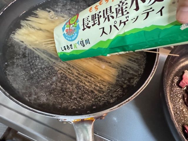 長野県産小麦粉を使ったスパゲッティの風味を存分に楽しめるように、みそ味もかすかな風味付けに。