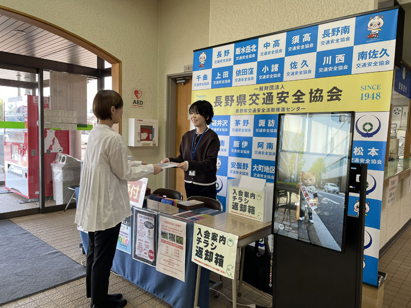 入会できる場所は、北信・東信・中南信の3つの運転免許センター、および県内27の地区安全協会です。入会者の9割以上は免許更新のタイミングで入会しており、手続きの流れはとてもシンプル。