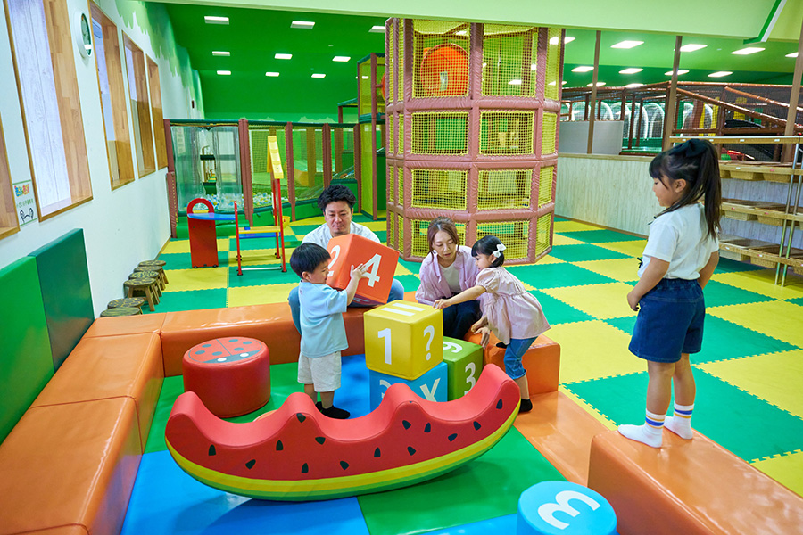 滑り台、ボールプール、トランポリンもあり、小さな子どもが安心して遊べる設計になっています。