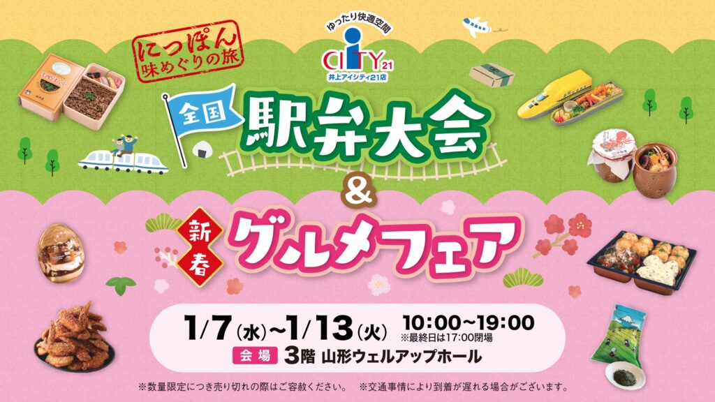 1/7~13開催!全国の人気駅弁とグルメが集結「全国駅弁大会&新春グルメフェア」で味わう、冬のおいしい旅気分@山形村